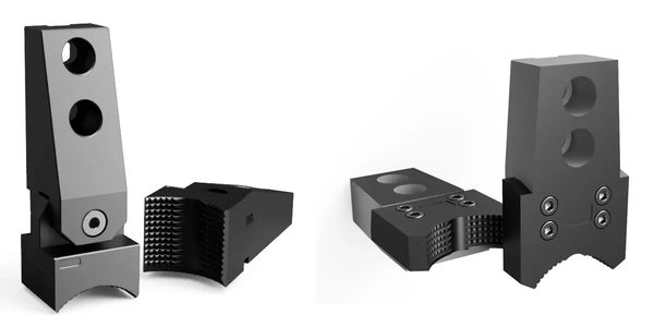 We offer quick change fixed and swivel style jaws, these jaws help reduce down time and increase productivity. We do manufacture custom sizes when requested.
